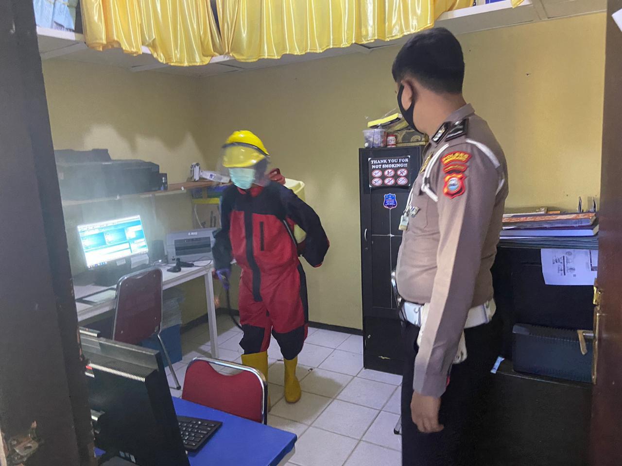 “Penyemprotan disinfektan dengan sasaran ruang BPKB dan SIM, meliputi ruang pegawai maupun ruang pelayanan publik ,” jelasnya.