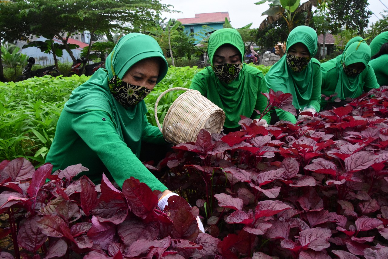 Di Tengah Maraknya Wabah Covid – 19, Persit KCK Tanam Dan Panen Sayur Mayur
