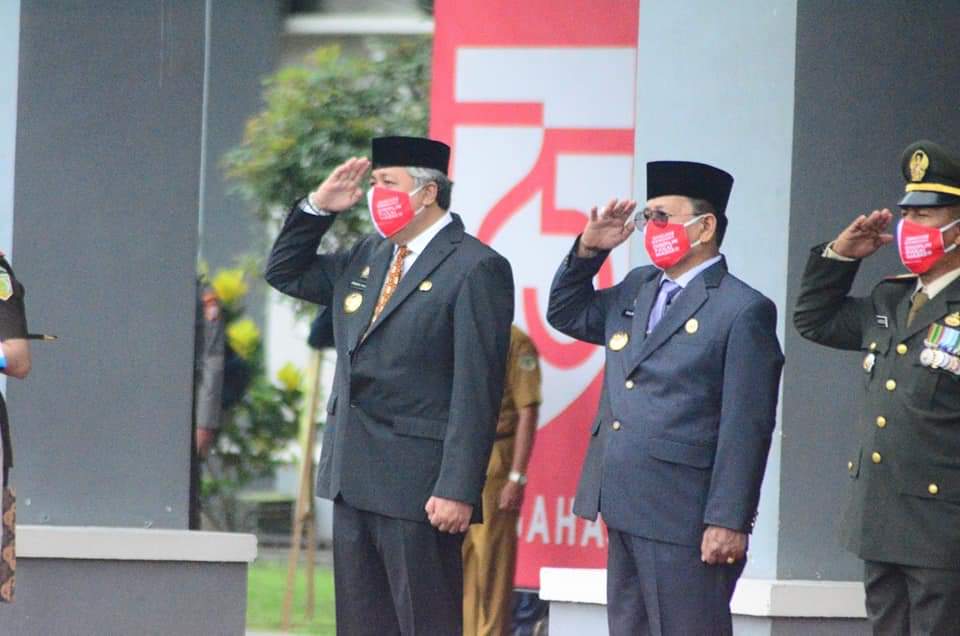 Upacara peringatan hari Pahlawan berlangsung sangat terbatas mengingat saat ini masih dalam suasana pandemi Covid-19 yang hanya diikuti oleh beberapa unsur TNI dan Polri, Satpol PP, para Staf Ahli, Asisten, para Pimpinan OPD, para Kabag Setda dan para Camat.