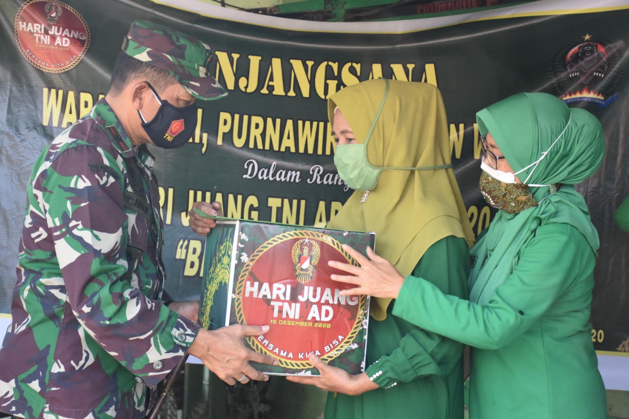 “Hari ini anjangsana Warakawuri, Purnawirawan dan Veteran dalam rangka Hari Juang TNI-AD tahun 2020 dengan tema Bersama kita bisa. Kita memberikan bantuan sosial pada warakawuri istri purnawirawan.