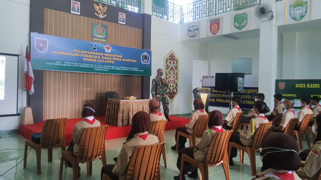 PENAJAM, BestNews19.com – Saka Wira Kartika Binaan Kodim 0913/PPU yang berjumlah 30 orang melaksanakan kegiatan pembinaan dari senior, kakak-kakak Pamong Saka serta Wakil Mabisaka dengan tema,”Mewujudkan Binter TNI AD Yang Adaptif Melalui Pembekalan Pramuka Saka Wira Kartika Guna Membentuk Generasi Muda Yang Berkarakter Dan Berwawasan Kebangsaan,” yang bertempat di Makodim 0913/PPU selama 2 hari. Minggu (27/6/2021).