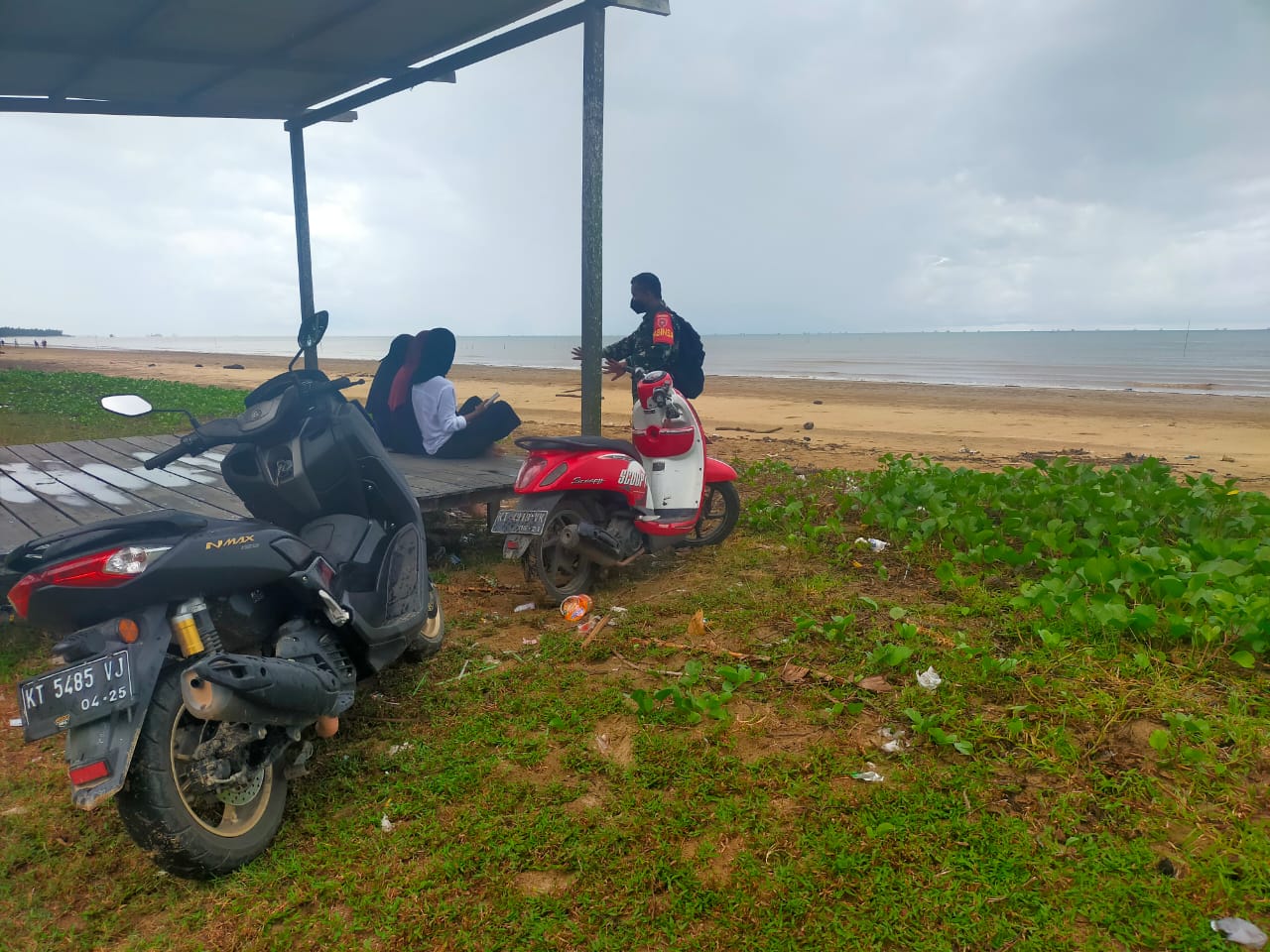 Babinsa Ingatkan Prokes Pengunjung Wisata Pantai Corong Tanjung Tengah