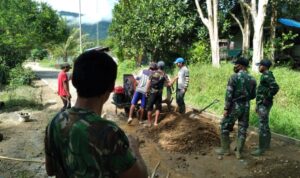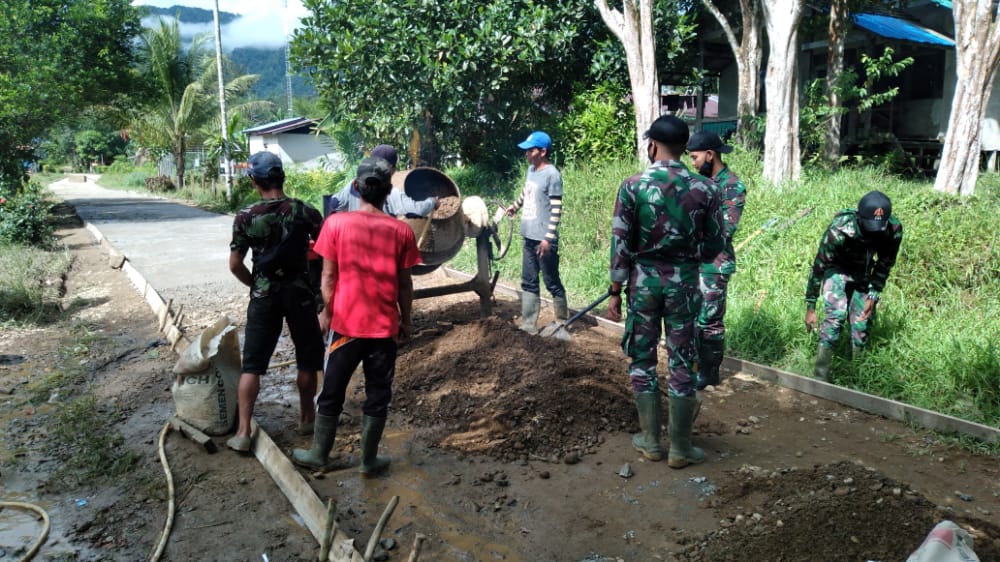 Serda Khoirul dan Empat anggota satgas,”dikatakannya, kegiatan gotong royong pengecoran jalan desa ini merupakan kemanunggalan TNI dengan rakyat dan memupuk tali persaudaraan sesama Warga,serta tidak luput mematuhi protokol kesehatan (Rls/Ajeng)*.