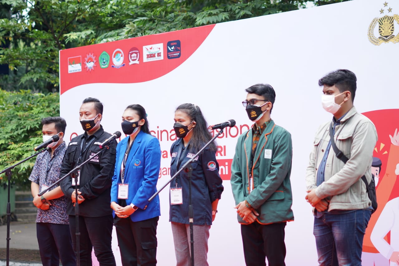 “Kegiatan hari ini dengan peserta 1700 mahasiswa dari 7 aliansi tergabung dari 30 universitas se Jabodetabek. Vaksin jenis Sinovac diberikan oleh Pusdokkes Polri dengan Kemenkes RI sekaligus bantuan dari TNI yang jadi tim vaksinasi kali ini,” lanjut Ginka.