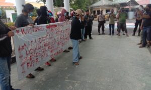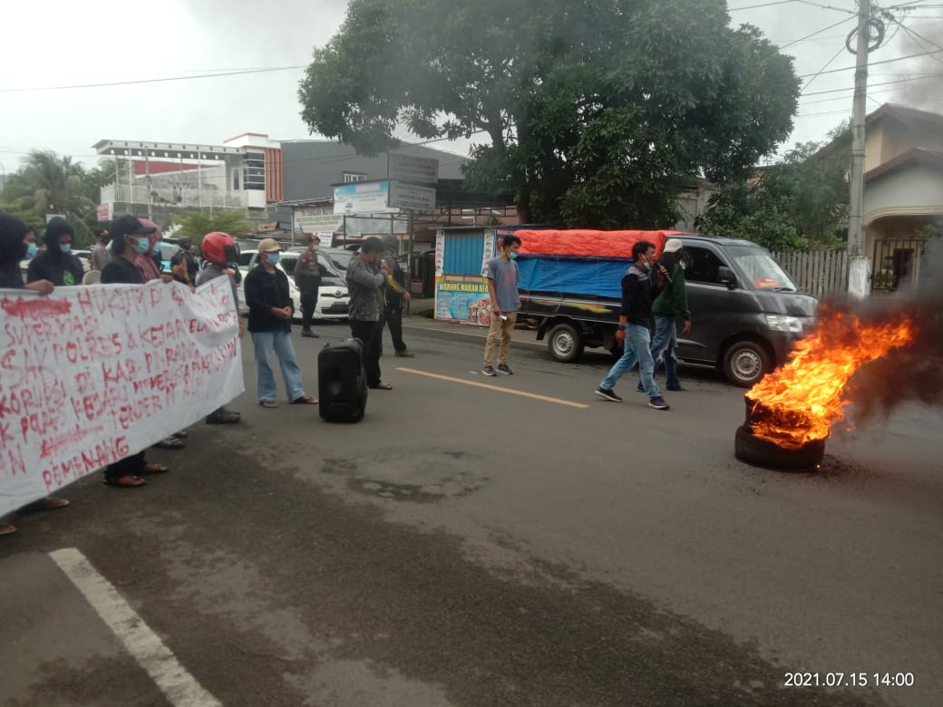 Dengan membawa bentangan spanduk serta membakar ban dan melakukan orasi secara bergantian menyuarakan kata “Copot Kadis PUPR, periksa dan tangkap pemenang tender PT. ALF, yang melakukan penyelewengan anggaran pekerjaan infrastruktur di Kabupaten Pinrang.” (15/07/2021).