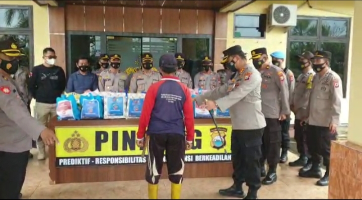 Pada kegiatan serah terima bantuan sosial di Mapolres Pinrang, Kapolres Pinrang AKBP M Arief Sugihartono tampak terlihat menyerahkan bantuan sosial secara simbolis kepada 7 (Tujuh) perwakilan warga masyarakat Kabupaten Pinrang yang kurang mampu.”