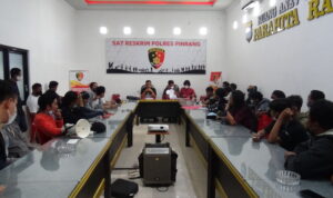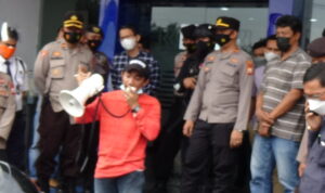 “Jenderal lapangan bersama koordinator lapangan aksi demontrasi aliansi pemerhati masyarakat Pinrang pada kasus dana KUR Fiktif BRI Cabang Pinrang kemudian melanjutkan aksinya di Mapolres Pinrang. Yang diterima secara langsung oleh Kanit Tipikor Satreskrim Polres Pinrang Ipda Muis Panrita untuk melakukan hearing di aula Anev Satreskrim Parahita Raksaka Polres Pinrang.”