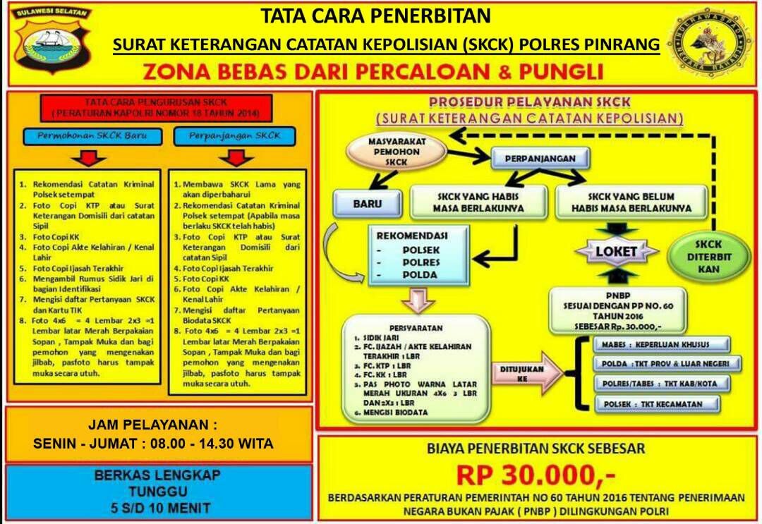 • Pengambilan Rumus Sidik Jari oleh Petugas Identifikasi SKCK WNA diterbitkan oleh BAINTELKAM POLRI (Polda dan Polres Pinrang hanya mengeluarkan Surat Rekomendasi Catatan Kepolisian).”