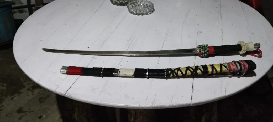 “Lantaran kedapatan membawa sebilah senjata tajam jenis katana yang diselipkan di pinggang sebelah kiri.”