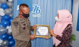 Dalam rangka HUT RRI ke-76 khususnya di RRI SP Bone, Komandan Batalyon (Danyon) C Pelopor Kompol Nur Ichsan, S.Sos menerima piagam penghargaan yang diserahkan langsung oleh Koordinator RRI Stasiun Penyiaran Bone Sabariah, S.Sos, Jumat (10/09/2021).