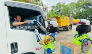 Kasat Lantas Polres Maros AKP Dharmawaty memulai kegiatan operasi patuh 2021 dengan sandi “Patuh 2021″, dan tak lupa untuk membagikan sembako, masker serta vitamin kepada para pengguna kendaraan yang di temui melintas di jalan poros Kabupaten Maros – Kota Makassar.” (Ajeng).