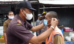 Hut TNI Ke-76, Muspika Kecamatan Mattirobulu, Bagikan Masker Dan Himbauan Penanganan Covid-19 di Pasar Kariango
