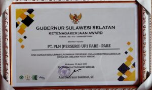 PAREPARE, BestNews19.com – PT PLN (Persero) UP3 Parepare diganjar sejumlah penghargaan baik Tingkat Nasional maupun Tingkat Provinsi.