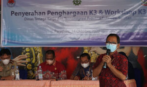 Penghargaan tersebut diserahkan oleh Kepala TU UPT pengawas ketenagakerjaan wilayah I Dinas Tenaga Kerja dan Transmigrasi (Disnakertrans) provinsi Sulawesi Selatan, Bakir Walid, didampingi Giawan Lusa, Ahli Ketenagakerjaan disnakertrans provinsi sulawesi Selatan di Cafe Lagota, Kota Parepare, Kamis 14 Oktober 2021.