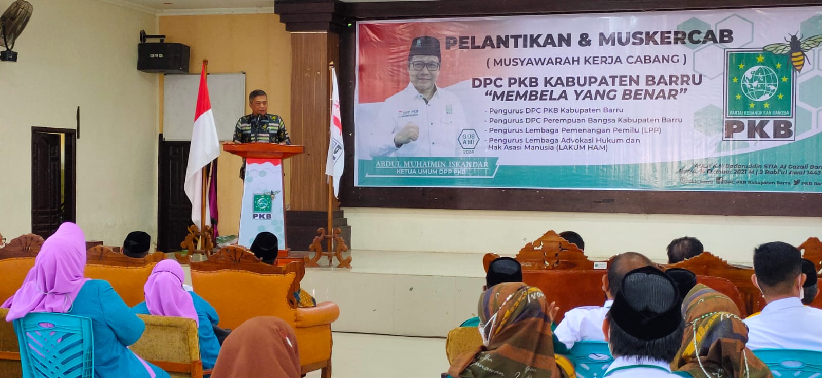 Bupati Barru Ir. H. Suardi Saleh, M.Si, sebagai ketua pembina Partai Politik, dalam sambutan tertulisnya yang dibacakan oleh Sekretaris Daerah Dr. Ir. Abustan, M.Si mengucapkan selamat atas pelantikan dan Muskercab DPC PKB masa bakti 2021-2026.
