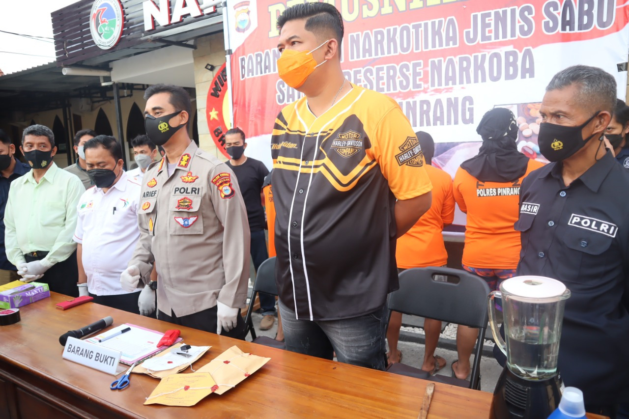 “Pemusnahan barang bukti tindak pidana penyalahgunaan narkotika jenis sabu ini merupakan hasil tangkapan Sat narkoba Polres Pinrang per Januari-Desember 2021 dengan mengamankan 114 tersangka terdiri dari 108 lakiaki dan 5 perempuan serta 1 tersangka anak di bawah umur, barang bukti yang diamankan dari semua tersangka berupa narkotika jenis sabu” jelasnya.