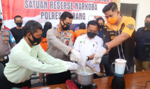 Kapolres Pinrang AKBP M.Arief Sugihartono SIK.MT mengatakan, pemusnahan barang bukti sabu-sabu ini merupakan hasil pengungkapan kasus narkoba per Januari-Desember 2021