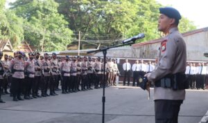 Dalam apel gabungan yang diikuti oleh seluruh jajaran personel Satbrimob Polda Sulsel mulai dari pasukan Detasemen Gegana hingga perwakilan pasukan Pelopor dari masing-masing Batalyon A,B,C dan D, KBP. Heru Novianto,S.I.K menyampaikan beberapa wejangan kepada anggotanya.