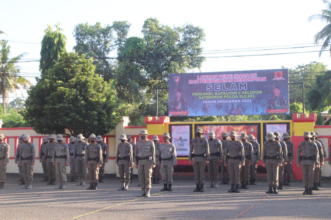 Dalam rangka pemeliharaan dan peningkatan kemampuan tersebut, Sat Brimob Polda Sulsel menggelar latihan selam bagi personel jajaran Batalyon C Pelopor, Senin (20/06/2022).