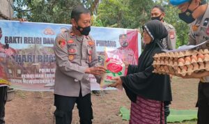“Untuk paket bakti sosial Hut Bhayangkara ke-76 tahun yang dibagikan kepada warga kurang mampu di kampung Dolangang desa Makkawaru Kecamatan Mattirobulu Kabupaten Pinrang Sulawesi Selatan berupa, 1 (satu) liter minyak goreng, 5 (lima) kg beras,1 (satu) dos intermie dan 2 (dua) rak telur.” Ungkap Amure perwira berpangkat dua balok di pundak.