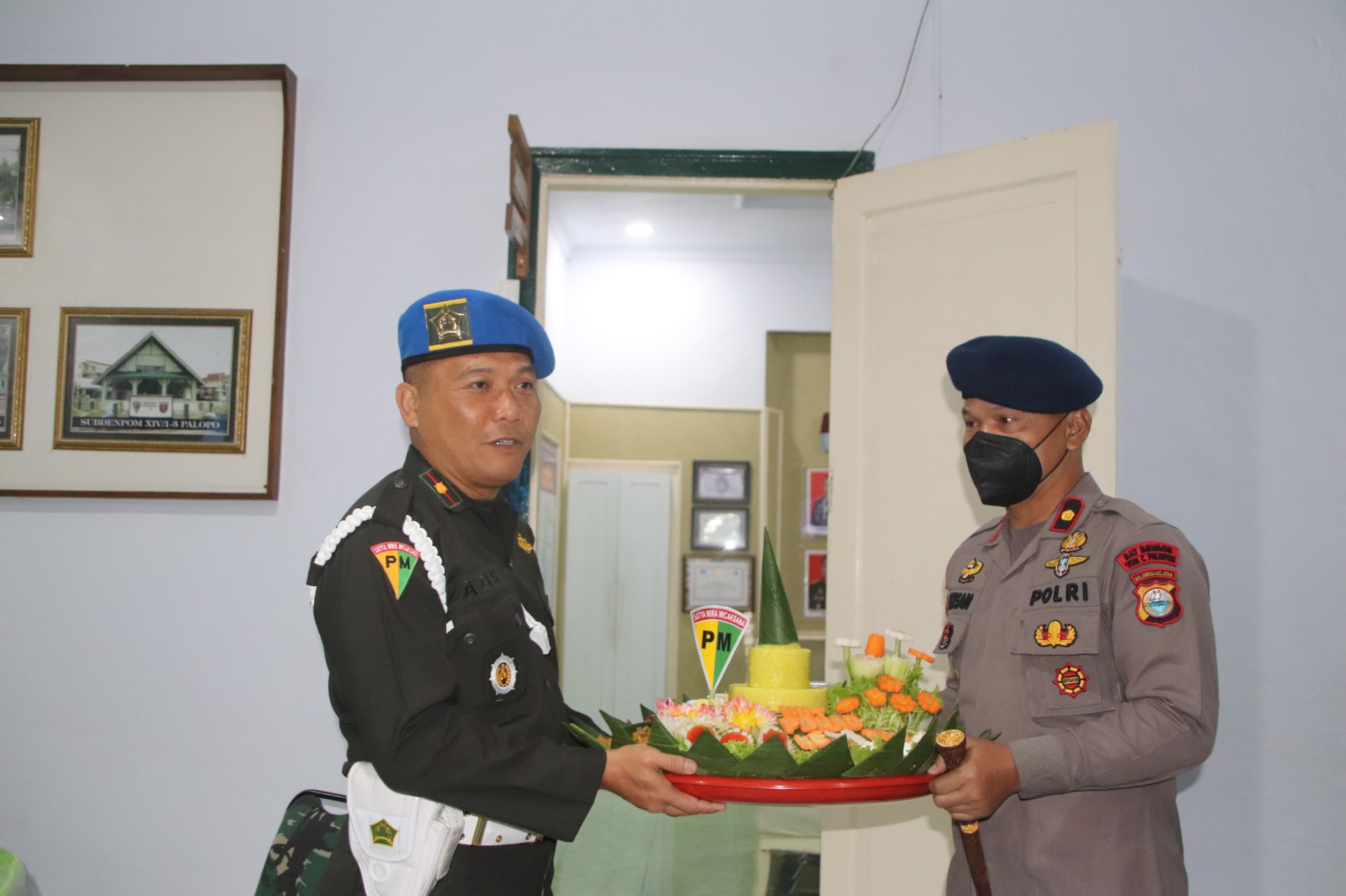 Diterima langsung oleh Komandan Detasemen (Danden) Pom XIV/1 Bone Mayor Cpm Azis Hamdani, S.H., M.Hum beserta anggota, Danyon C menyerahkan nasi tumpeng sebagai kado HUT POMAD Ke – 76.