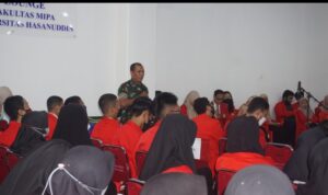 Didampingi para Wakil Dekan Fakultas Matematika dan Ilmu Pengetahuan Alam (UMIPA) Universitas Hasanuddin, Danramil dalam kesempatan tersebut menyampaikan, bahwa Bela Negara penting sebagai daya tangkal bangsa terhadap berbagai ancaman pertahanan negara, diantaranya untuk menangkal ancaman terhadap idiologi Pancasila.