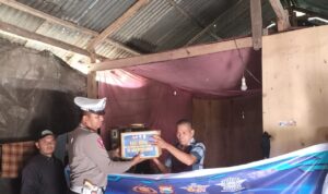 AKP Nawir Eming yang di dampingi Kanit Turjawali Ipda Niswan dan Ps Kanit Kamsel Aiptu Harmin Lakkase serta para personil Satlantas Polres Pinrang terlihat menyisir wilayah Hukum Polres Pinrang untuk membagikan sembako kepada warga kurang mampu para kaum duafa, pemulung serta para tukang becak.”