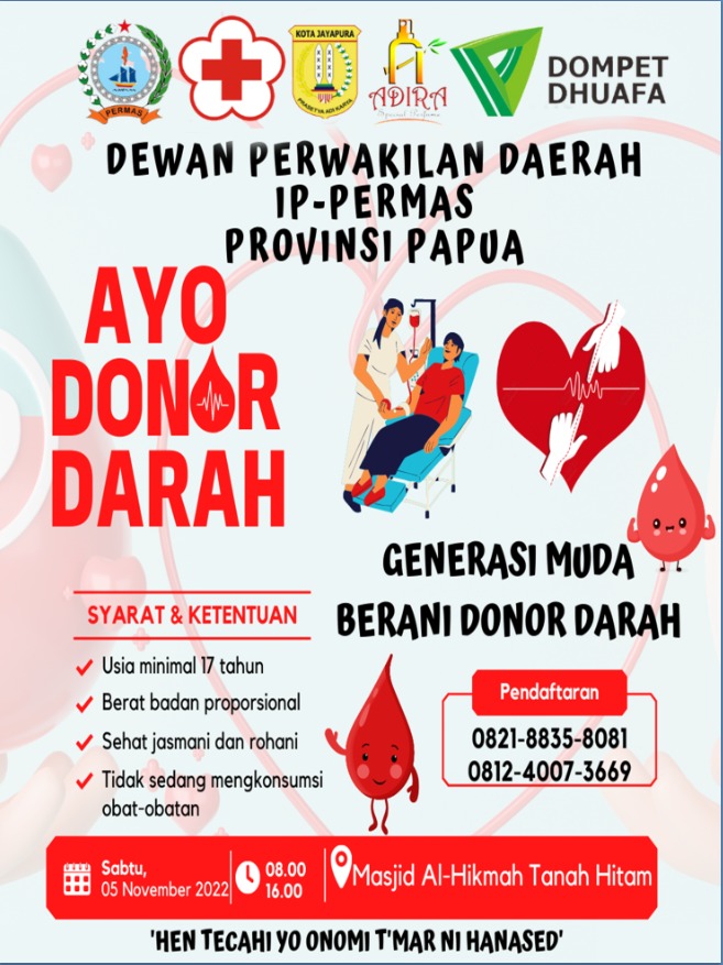 Selain dari Ikatan Pemuda Permas, kegiatan aksi donor darah dan pemeriksaan kesehatan gratis ini mendapat support dari berbagai pihak, termasuk dari PMI Kota Jayapura dan Dompet Duafa.