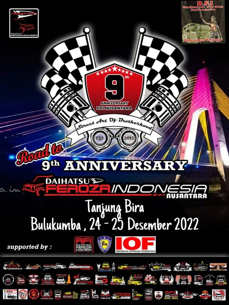 PINRANG, BestNews19.com – Memasuki tahun ke-9 berdirinya Daihatsu Feroza Indonesia (DFI) Nusantara yang jatuh pada tanggal 24-25 Desember 2022 mendatang.