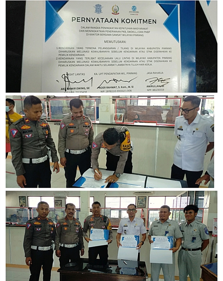 Hal tersebut sebenarnya sudah lama dilakukan, dan harapan kami melakukan penandatanganan MoU ini agar lebih menguatkan komitmen bersama antara pihak Satlantas Polres Pinrang bersama UPT Samsat Kabupaten Pinrang dan Jasa Raharja Kota Parepare Sulawesi Selatan.” Tutup Nofrizal Pratama pada awak media (709).