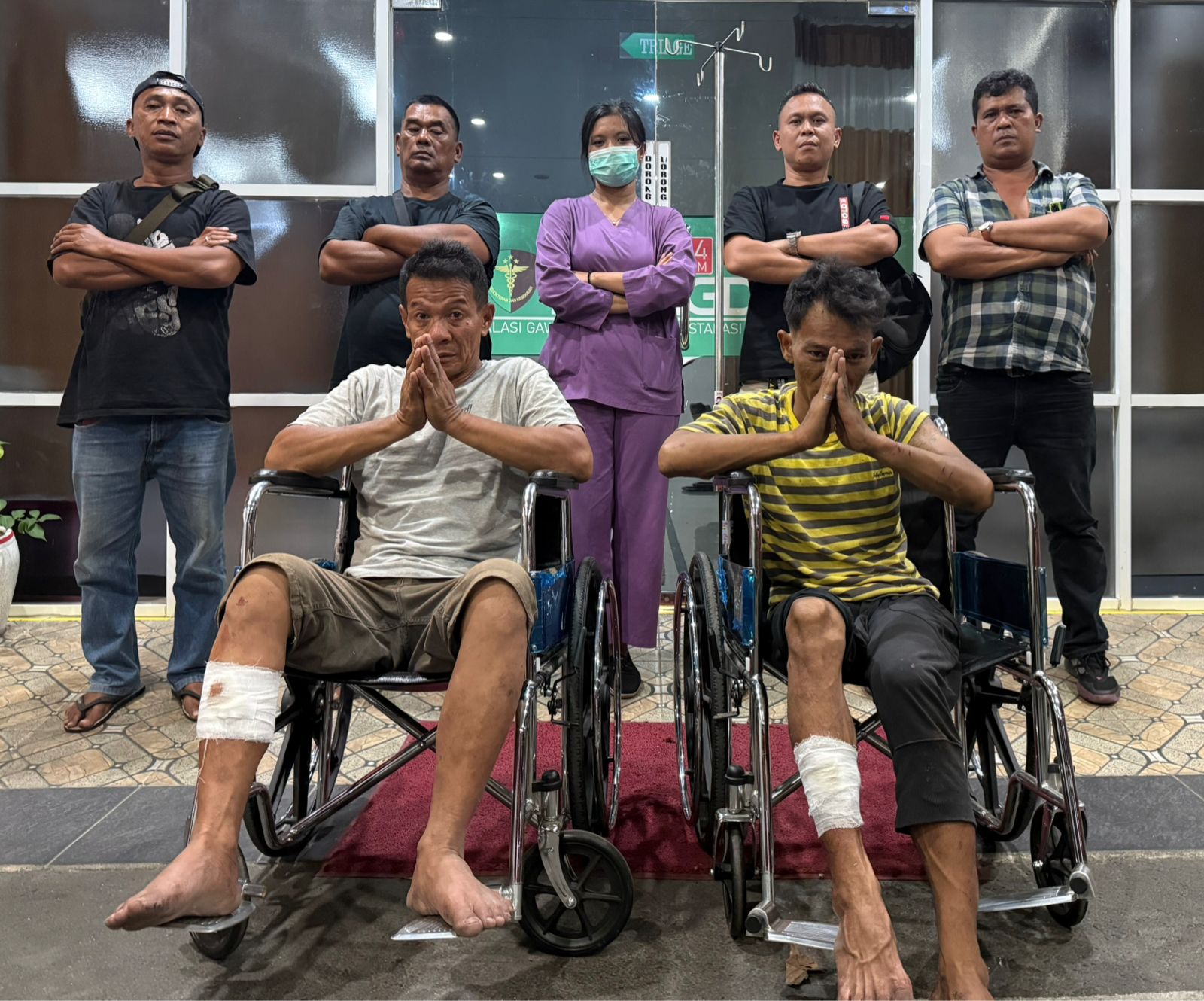 Setelah dilakukan perawatan medis di RS Bhayangkara, tersangka dan barang bukti dibawa ke Mapolsek guna sidik lanjut.