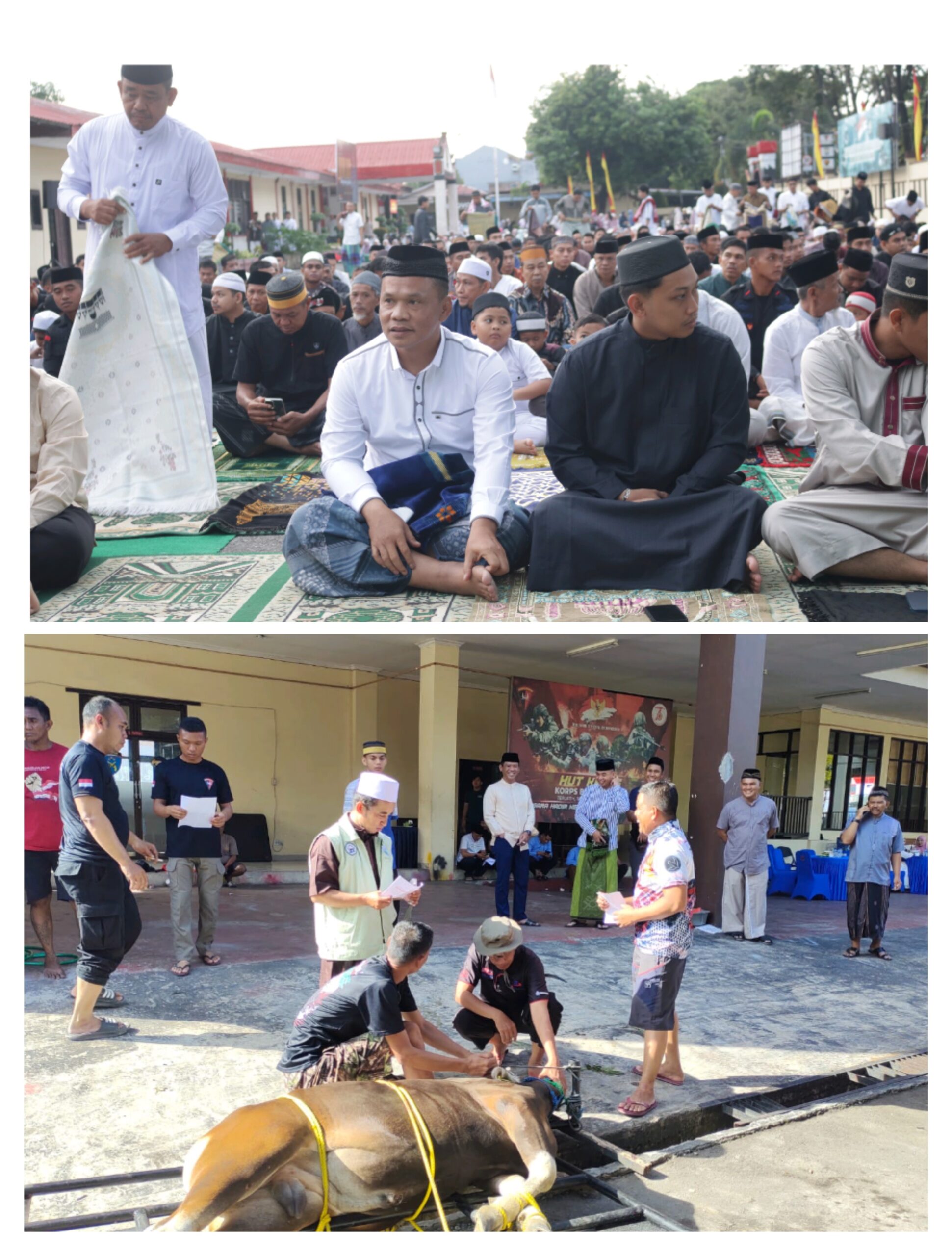 Hadir sebagai khatib, Ustaz Dr. Abd. Basir S.HI., M.M yang mengusung tema, “Idul Adha Meningkatkan Keimanan, Ketakwaan, Kepedulian Sosial Guna Mewujudkan Polri yang Presisi”.
