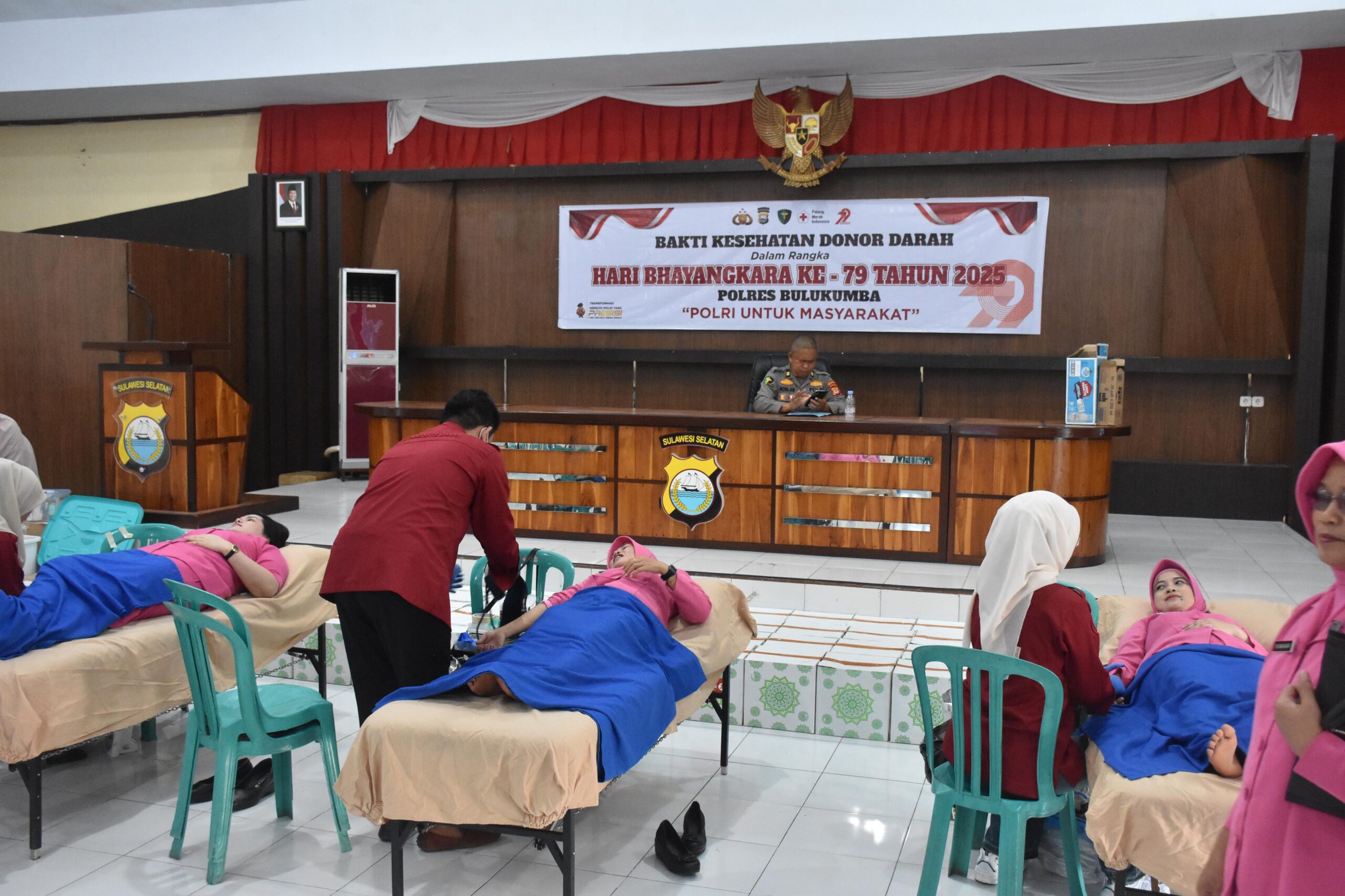 Dalam kegiatan tersebut, Kapolres Bulukumba AKBP Restu Wijayanto, S.I.K., menjadi personel pertama yang mendonorkan darahnya, diikuti oleh para personel lainnya. Ketua Bhayangkari Cabang Bulukumba, Ny. Ruthi Restu, juga turut mendonorkan darahnya bersama para pengurus Bhayangkari.