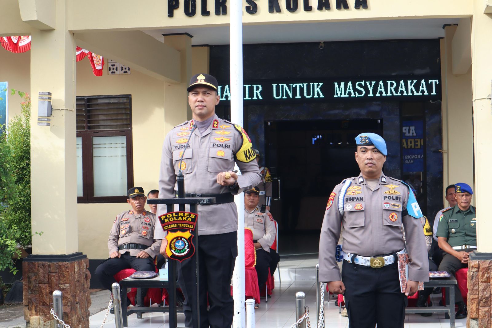 Apel yang berlangsung di lapangan Mapolda Sultra ini dipimpin langsung oleh Kapolres Kolaka AKBP YUDHA Widyatama Nugraha, S.I.K., M.H., CPM. dihadiri undangan Forkopimda, Pejabat Utama Polres Kolaka.