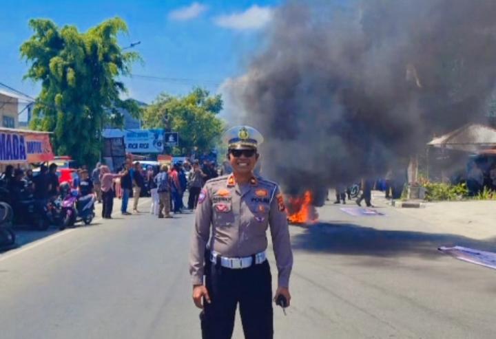 Meski di tengah situasi yang sempat memanas akibat aksi bakar ban, personel Satlantas terlihat tenang dan humanis dalam bertugas. Mereka tetap berkomunikasi dengan peserta aksi, mengimbau agar menjaga ketertiban dan tidak mengganggu pengguna jalan lain.