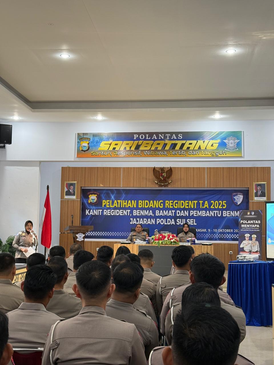 Kegiatan pelatihan Regident T.A 2025 ini menjadi bagian dari program Ditlantas Polda Sulsel untuk meningkatkan kualitas sumber daya manusia, sekaligus memastikan seluruh jajaran mampu memberikan pelayanan yang cepat, transparan, dan humanis kepada masyarakat (1707).