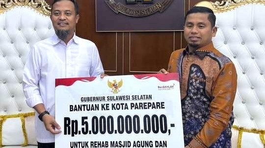 Bantuan senilai Rp5 miliar itu diperuntukkan bagi rehabilitasi Masjid Agung Parepare, Masjid Terapung BJ Habibie, serta promosi UMKM di Kota Parepare.